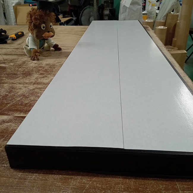 厚物ゴムに両面テープをつけて納品できます。両面テープがついていると剥離紙を剥がすだけですぐに貼り付けできるので非常に便利です。両面テープで完全接着はできませんが、仮止めができると作業効率が格段に上がります。現場によっては両面テープの接着力で十分な場合もございます。