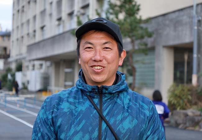 「走高跳で一定のレベルより上を目指そうと思うと土の上での練習が厳しくなってくるんです。コーナーの遠心力と踏切で滑るようになるのでどうしても跳ぶための助走ができなくなってしまうのです。ゴムマットがあると、コーナーも踏切も滑らなくなるのでかなり良いと思いますね。走高跳のスパイクは踵にもピンがあって踏切でしっかり止まることができるようになっているのですが、使い慣れないうちは中々跳べなかったりするんです。実際に角村選手も初めのうちは戸惑っていた様子でした。特に踏切に違和感があったんだと思います。今ではスパイクも履きこなしていますが、ゴムマットでスパイクを履いたまま練習できたのはかなり大きな違いだったと思います。河原城中学校ではアスファルトの上で敷いて使っていますが、ゴムの厚みは10mmが良いですね。5mmだと少し硬いイメージがありました。」