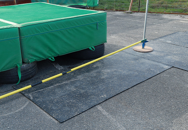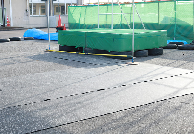 ゴムマットの感想を伺うと「踏切で滑らずに止まるので助走からそのままの勢いで跳べるのが良いです。」と教えてくださいました。