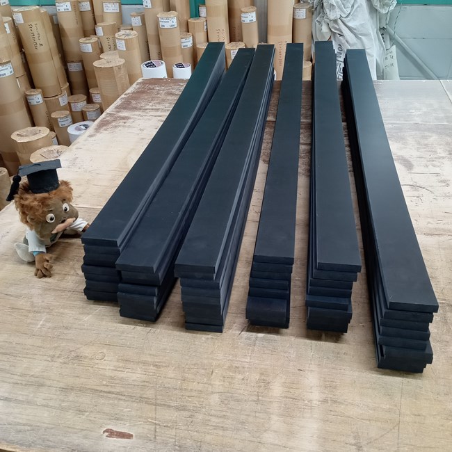 ゴムシート.comのご注文件数は6~7割が長さの切り売りですが、3~4割は御見積からのご注文です。現場に応じたサイズ、形状にしてお届けしています。