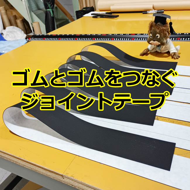 ゴムとゴムをつなぐジョイントテープをご用意しています。貼るだけで疑似的に1枚の大きなシートにすることができ、継ぎ目を隠す効果も得られるため、大変人気の商品です。